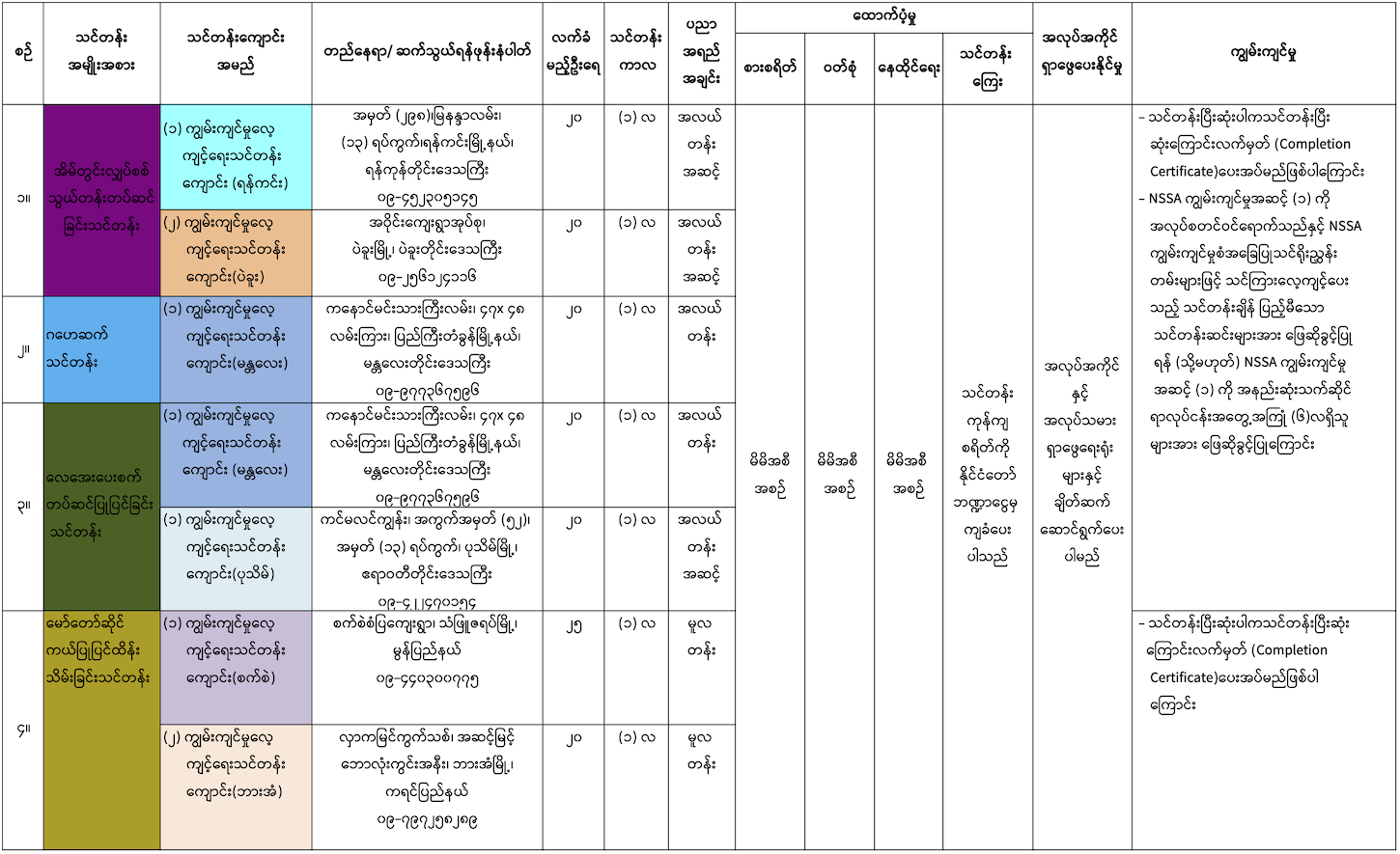 ကျွမ်းကျင်မှုလေ့ကျင့်ရေးသင်တန်းကျောင်းများ၌ ၂၀၂၅ ခုနှစ်၊ ဒီဇင်ဘာလအတွင်း ဖွင့်လှစ်မည့် ကျွမ်းကျင်မှုသင်တန်းများ